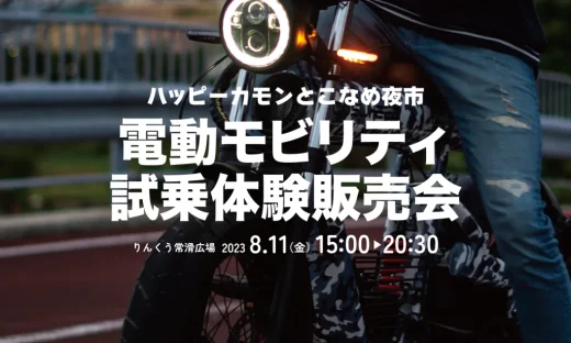 9月14日、9月15日で行われる「りんくうトワイライト」にて電動キックボード体験ゾーンを設けております。最新型の電動キックボードを思う存分に体験し、公道走行も楽しめるミニツアーもあります。